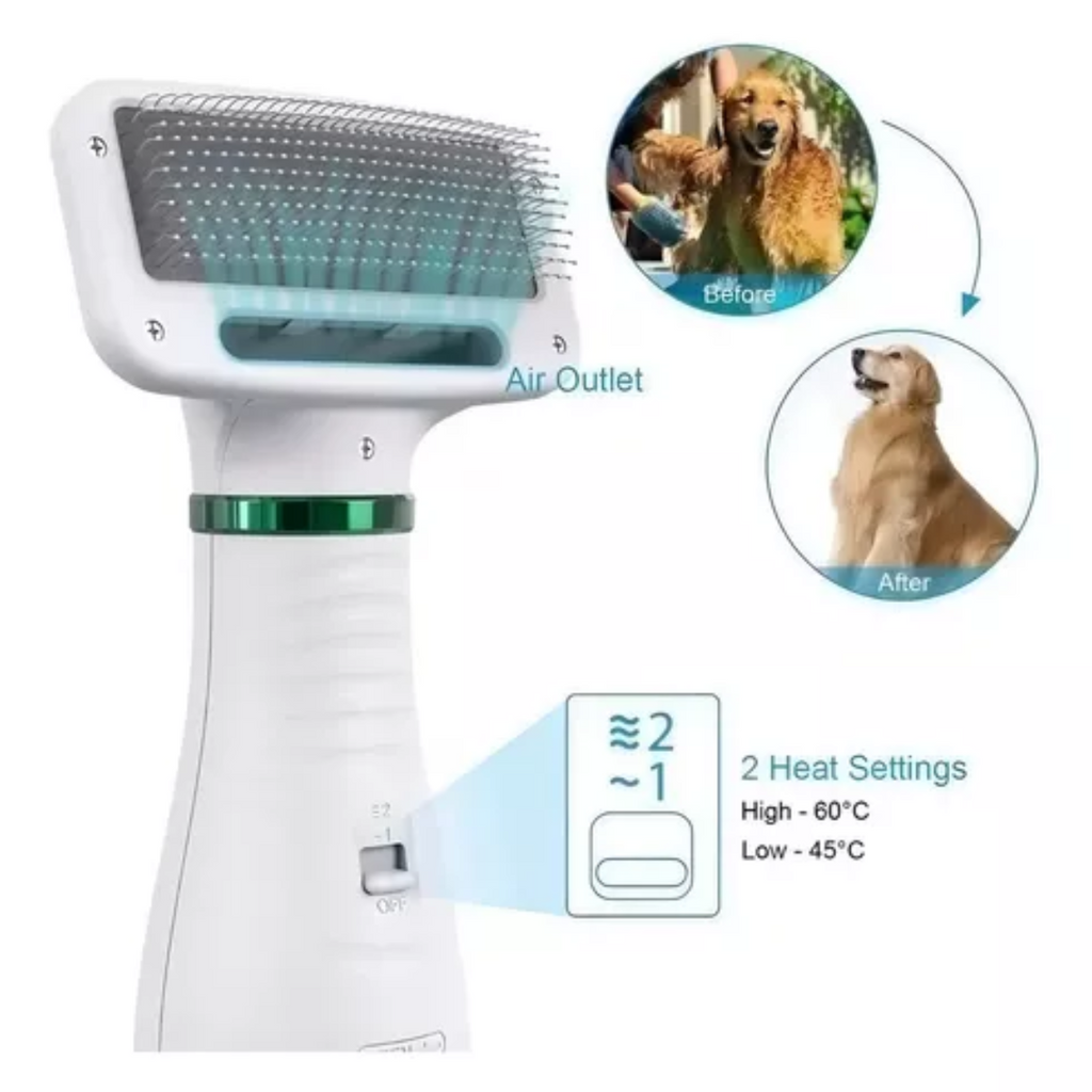 Este cepillo secador 2 en 1 fue diseñado para que tú y tu mascota disfruten juntos del momento del secado, sin estrés y sin desorden.